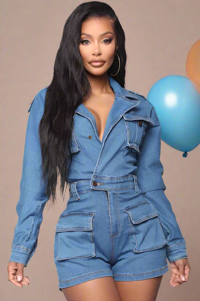 The EM Denim Romper offers a fashionable yet practical option for those on-the-go. Made with durable denim material, this romper combines style and comfort for a versatile addition to any wardrobe. With its versatile design, it's perfect for any occasion, from a casual outing to a night out with friends.