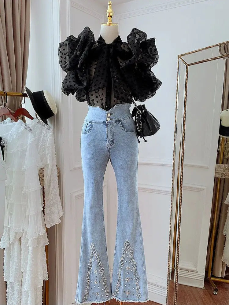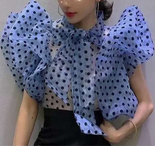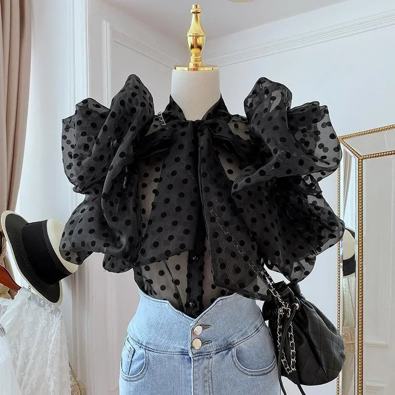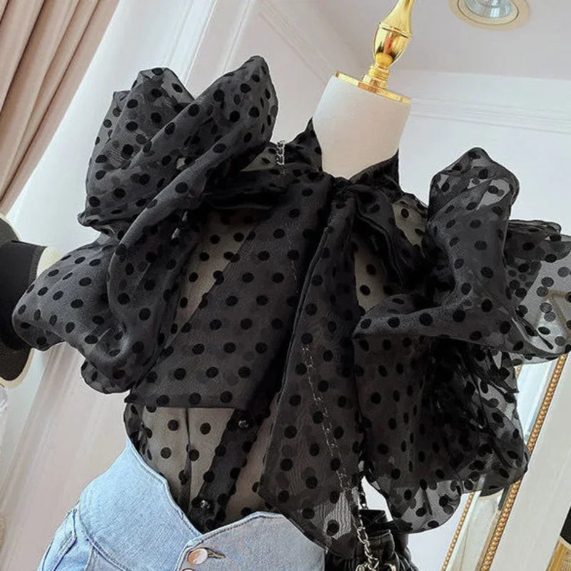 EM Ruffle Puff Sleeve Polka Dot Shirt