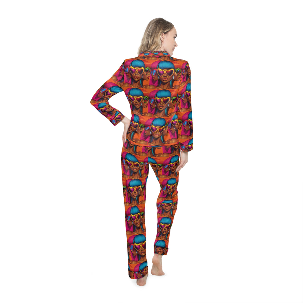 Vibe Vibrant Women's Satin Pajamas - Bold Print for Stylish Relaxation