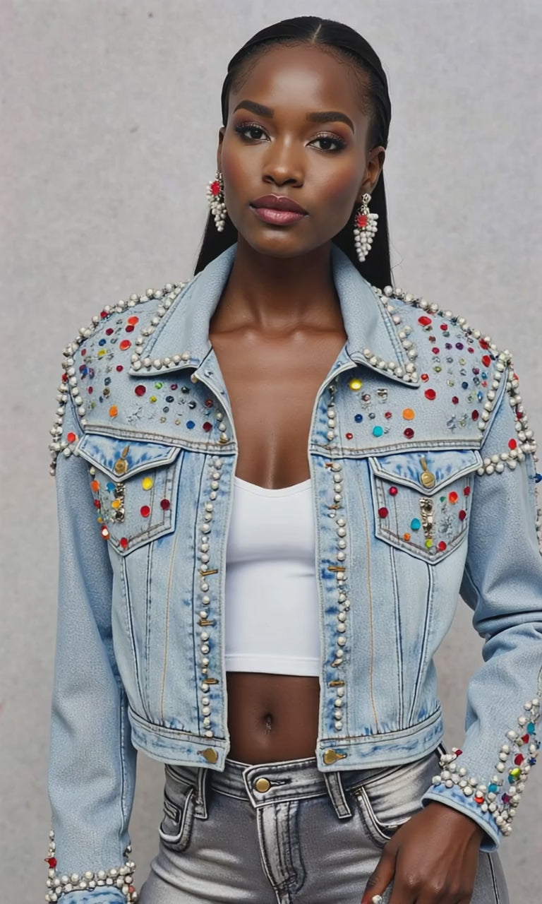 This beading diamonds denim jacket is the perfect addition to your wardrobe. The intricate beading adds a touch of elegance and will elevate any outfit. The durable denim fabric ensures long-lasting wear, while the stylish design will make you stand out. Upgrade your wardrobe with this must-have piece.