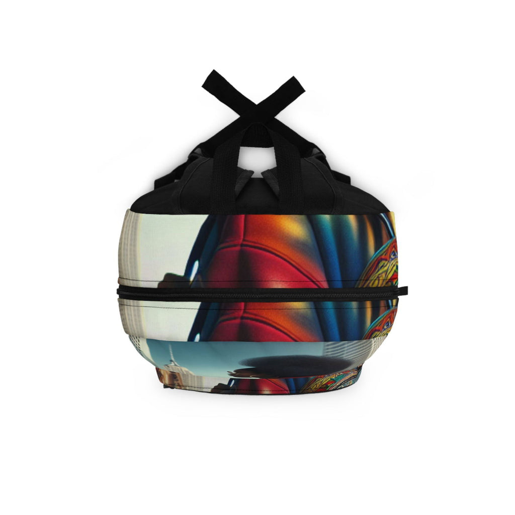 Revel in the vibrancy of street culture with this wearable art: a backpack featuring a confident young black girl in hip-hop inspired attire. The burst of colors and symbolic graffiti patterns celebrate the urban hip-hop scene against a cityscape backdrop. #StreetArt #WearableArt #HipHopFashion #UrbanStyle #GraffitiBackpack #YouthPower #CulturalPride #YoungBlackGirl #Confidence #CityscapeBackpack