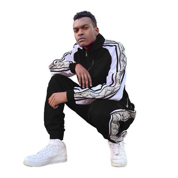 Snake Print Track Suit Full Zip Jacket Elastic Waist and Drawstring Bottoms 95 Polyester 5 Spandex